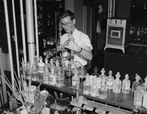 1937 photo Testing cosmetics at Department of Agriculture Washington D.C. July 10. Dr. D.C. Grove, o
